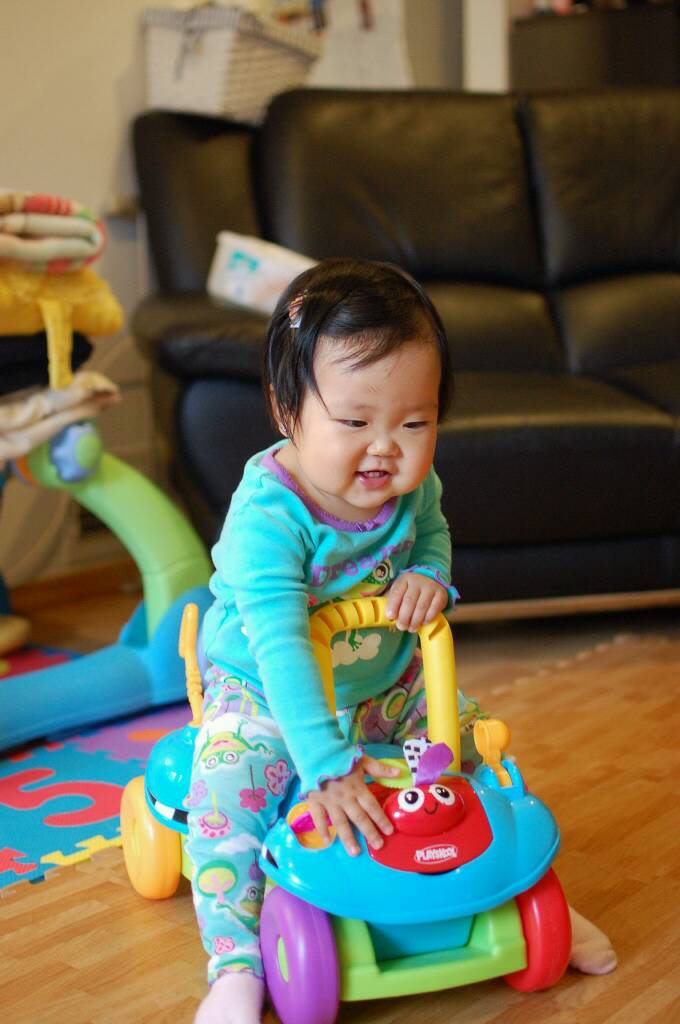 You are growing so quickly into your own person. You're the perfect balance of sweet and cuddly, but rambunctious with just enough attitude. I laugh often because you really are such a girly girl. Thank you for being you, for making life so much sweeter, and for making life just difficult enough to keep it interesting. Thank you for all the lessons you continue to teach me. You are such a happy baby and it makes me feel as if I am doing something right which makes my heart smile. I watch you sleeping many nights and marvel over how much you've grown. Yet, you are still small enough to fit snuggly in the crook of my arm when you're tired and in need of a cuddle. You're an absolute delight when you run over for a hug in the middle of throwing your toys across the room just to make sure mommy is there watching you demolish furniture. I love, and am amazed, at how quickly you pick up on and learn things by pointing or signing and I am more aware of how careful I need to be around you because you are becoming quite the monkey. I would appreciate it if you didn't slap me across the face to wake me, but if you must every morning elbow me in my eyeball or drop your entire 20-pound self onto mommy's face for some attention, I will still love you because I understand how much fun it must be for a miniature human to watch mommy's face contort as she yelps in pain. I also thank you for being over your cold, because you seem to be yourself again - the happy baby that eats and plays and doesn't throw herself on the floor kicking and screaming. For a while there you had me terrified because I thought you hit the terrible twos at one. Tomorrow, we will try taking pictures again, and it would be lovely if you would cooperate. It is, afterall, your 12th month. It's our last sticker. I promise I won't put anymore of those silly picky stickies on you again. I love you more than you will ever know. Happy Birthday, my little Squirmy.